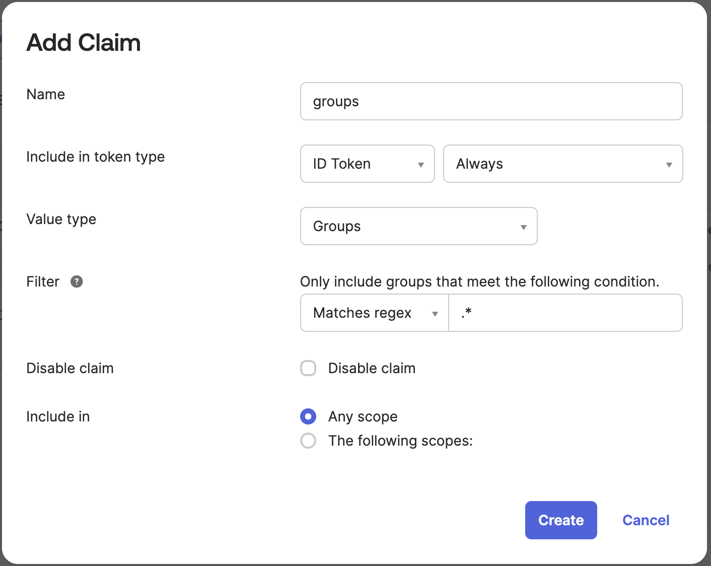 groups claim for the ID Token to any scope (image below)