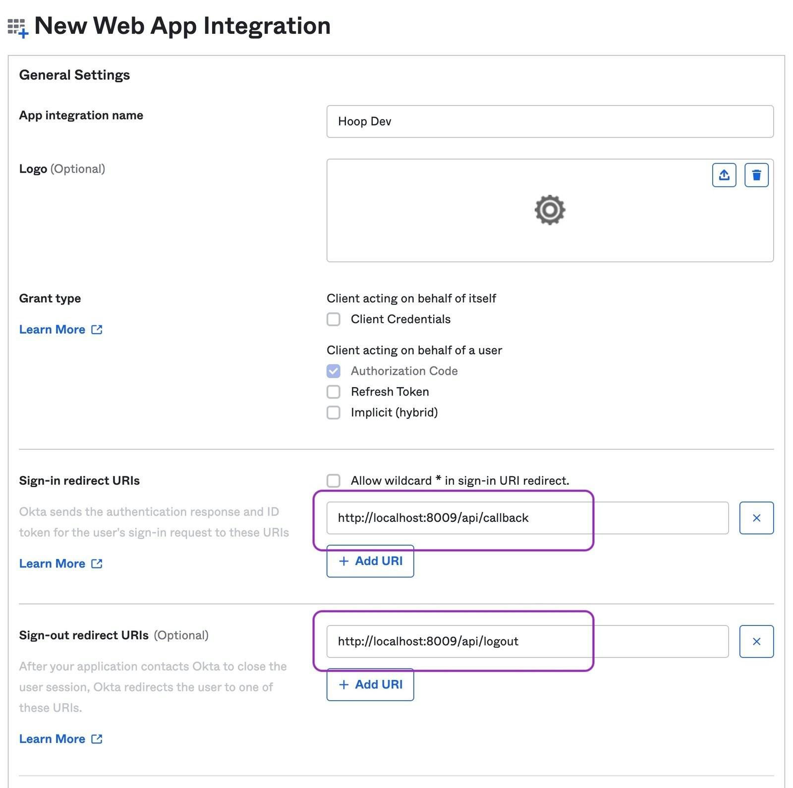 - Signin redirect URIs: